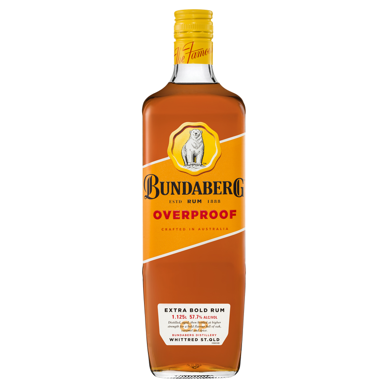 Bundaberg Rum Overproof is distilled and aged for a bold, rich flavour full of oak, caramel and spice. First distilled in 1888, Bundaberg Rum is as Australian as it gets. Made from 100% sugar cane then matured to perfection.